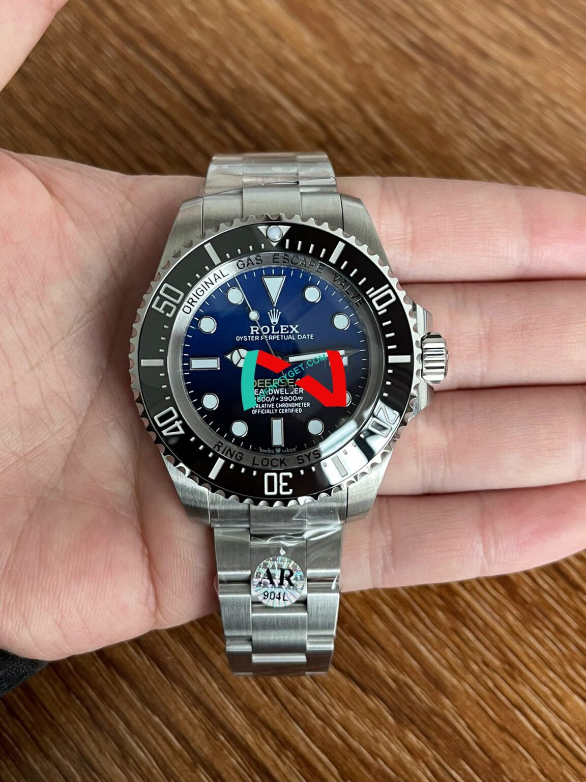 Rolex Sea-Dweller REF# 116660 Deep Sea Blue Swiss The Best Sea-Dweller Model Replicated up to Date. The First Rolex model to adopt a 904L Steel on Casing and Strap which is the same steel used by Rolex.Compared with an Original Side by Side and there were NO Differences Whatsoever. Complete list of details have been stated below and you will see that tremendous amount of detailing and work has been put into this edition.Genuine Swiss 2824-2 Movement; 28,800 VPH904 Stainless Steel Case.Blue and Black Dial with Super-Luminova applied to Hands. Shading of Dial is exactly as per the genuine. Hour Markers and Bezel Pearl. Dial Font is Crisp and is now on Par with the Originals.Date Window at 3 O’Clock with Beveled edges as per the Original.Inner Rehaut is brighter and has more accurate and crisp marking when compared to previous models.Helium Valve Located at the Case Side as per the Genuine Uni-Directional 120 Clicks Bezel with Black Ceramic Inserts with Updated Crisp Font over all previous versions. Bezel has been coated with brighter Platinum Coating exactly like the originals and depth of bezel markings are of the exact same depth to the originals.Genuine Scratch Proof Sapphire Crystals with Anti-Reflective Coating. Crystal Thickness and Crystal Height above the Bezel is now exactly like the Original. Crown Etched onto Crystal at 6 O’Clock, the Crown’s clarity and visibility is exactly like the Original which is readily not visible to the naked eye and requires magnification to view clearly. Crystal has been updated to have a more rounded edge surface when compared to the Original.Solid Case Back with Real Titanium Seal, Two piece Case back as per the Original.One piece Screw down Crown with Rubber O-Ring Seal with Thick Crown Tube with the same Thickness to the Original.904L Stainless Steel Oyster Bracelet with Brushed Finish and new design Diver’s Extension. Bracelet’s been updated with Ball Bearings in Ceramic in Latch Mechanism and Buckle has been updated with much better Finishing and Crisp Markings.44MM Wide x 14MM Thick Water Resistant up to 300 Meters Free Shipping on this item worldwide with 2 year Warranty – For more information please contact Us The Images you see are of Actual Watches, You will get exactly the same watch you see in the Images