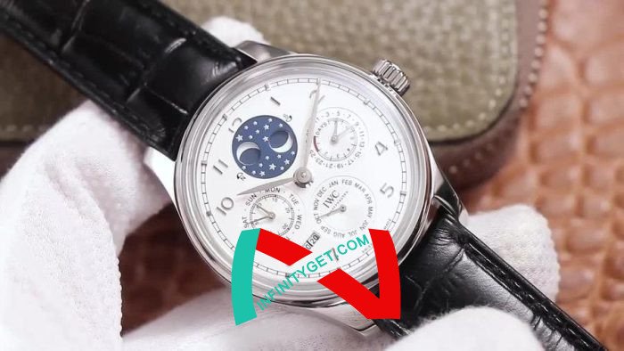 Portuguese series IW5034.01 million calendar watches, the first true permangeable calendar, the use of imported large fine work as the basis for the movement upgrade to 52610 movement, not only to achieve most of the functions and walking stability, repair rate is very low, this is the re-engraving market rarely imperficable complex function watch. Reason to start with: 1, 10,000-8-point position Perennian calendar year normal operation (2017-2024, 2024 free return to the factory to replace the year module), as the original can be adjusted by the case hide button, and better than the original reversible (original) The year is irreversible, after the adjustment is to be repaired at your own expense); 2, the sun and moon star (annual calendar) - date (3 o'clock), month (6 o'clock), week (9 o'clock) are all normal transmission operation, and can be manually adjusted (date by pulling out the second gear two-way adjustment, Month through the 8-point hidden button adjustment, the week can be driven by adjusting the pointer); 3, exquisite workmanship - both inside and outside, German CNC equipment open mold case strap, later manual one by one QC, the shell of each place of the rash and invert almost comparable to the original, movement text font distribution synchronization original, fish scales and other pattern grinding details are very delicate. The arched scratch-resistant mirror is as permeable as the original. 4, hand elegant - size 41 x 13