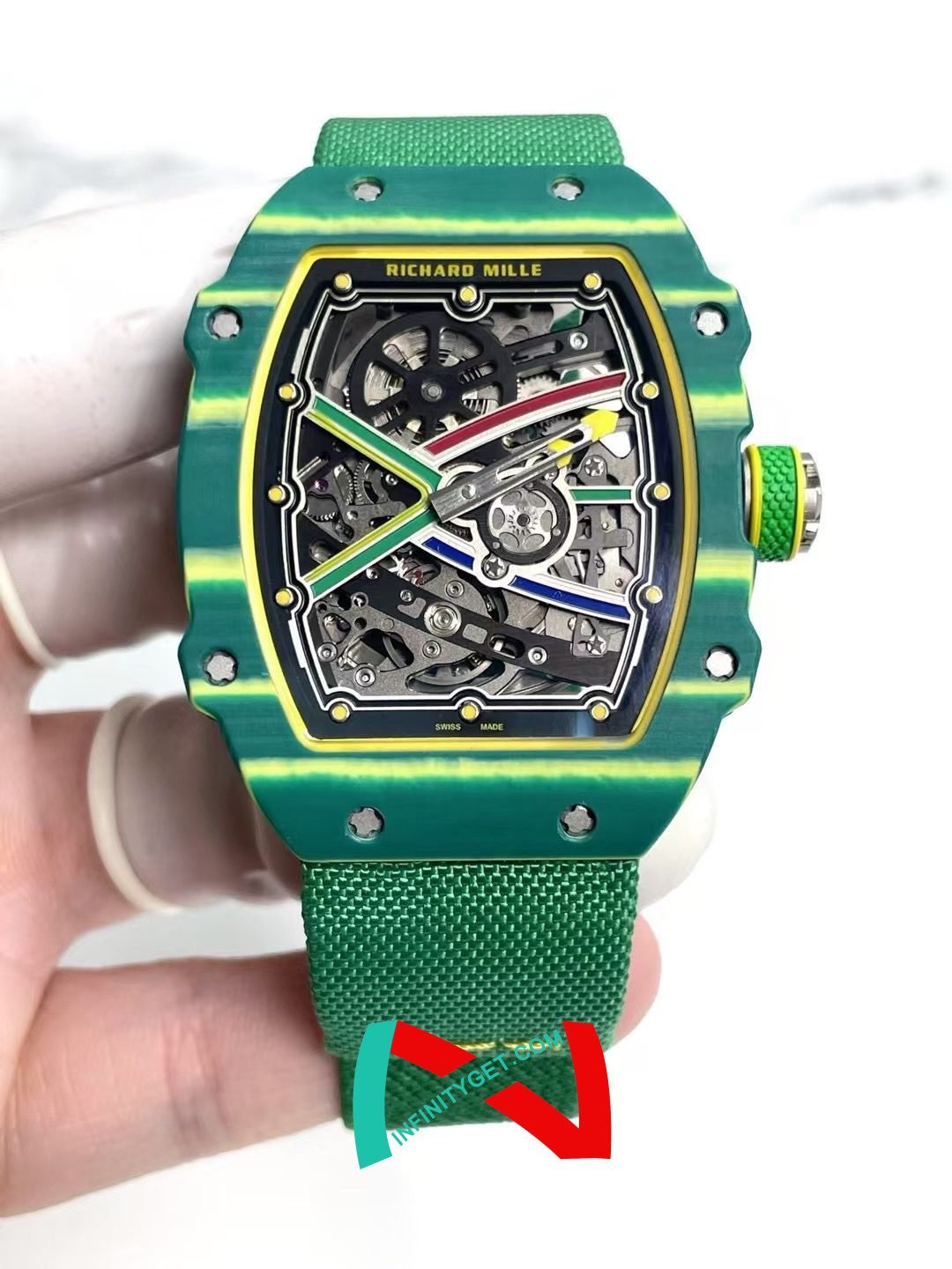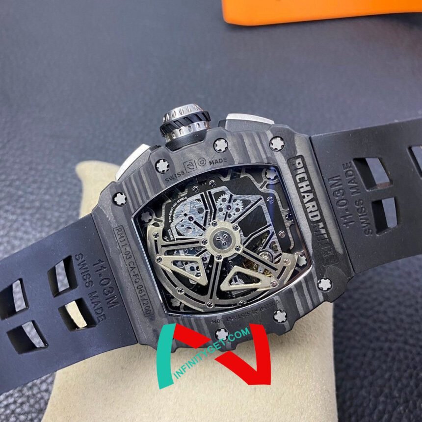 1. It took four years, the only RM copy with the original open mold; 2. The use of RM original NTPT carbon fiber to create an all-carbon case, NTPT carbon flower cloud pattern, waves, are through the ABD shellmaker's hand-polished decoration, the upper hand state invincible; 3. The whole table and the original assembly structure consistent; 4. All through 3 bar waterproof detection; Custom version of RMUL3 movement, hair box and gears move with the adjustment; RM011 glass, glue rings on the head, rubber straps, titanium buckles can be used in the original.Rubber Strap, SWISS Manual Winding