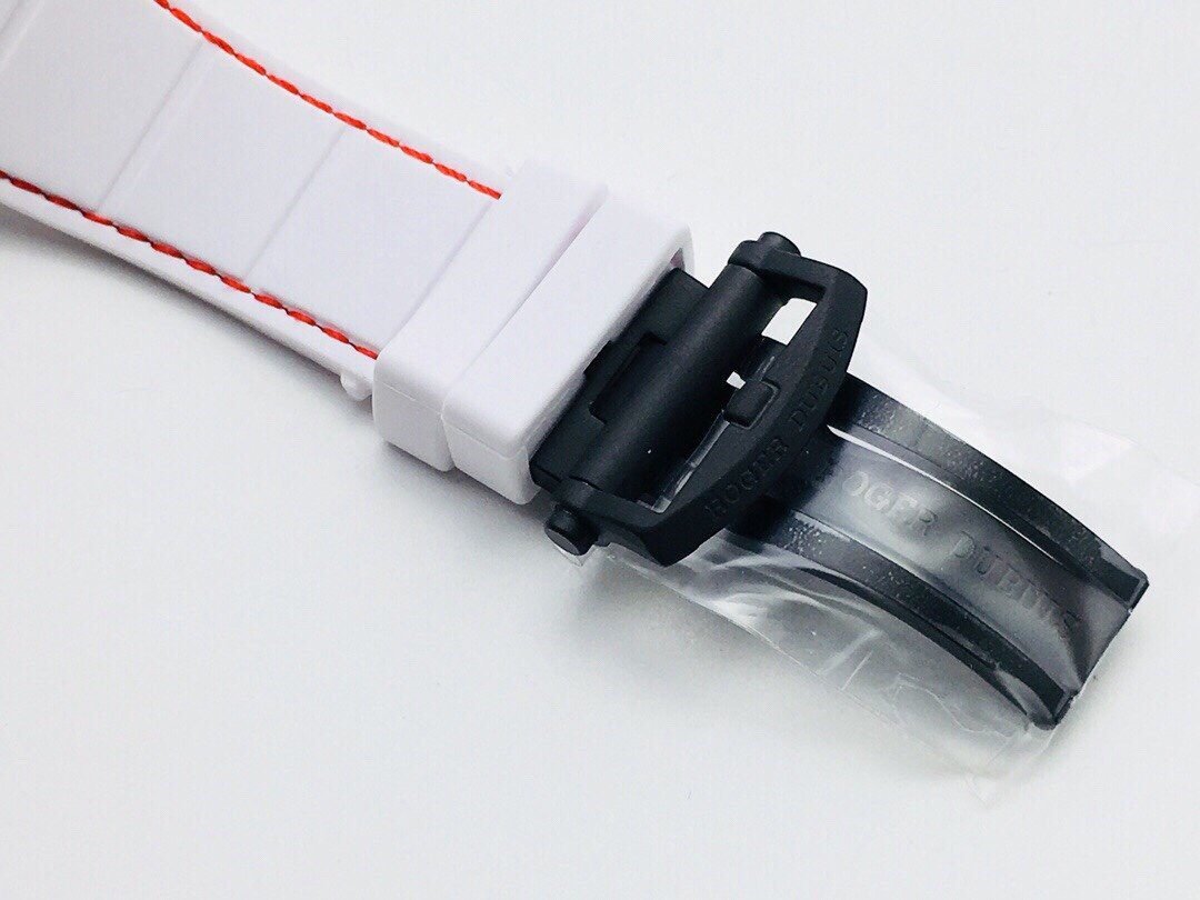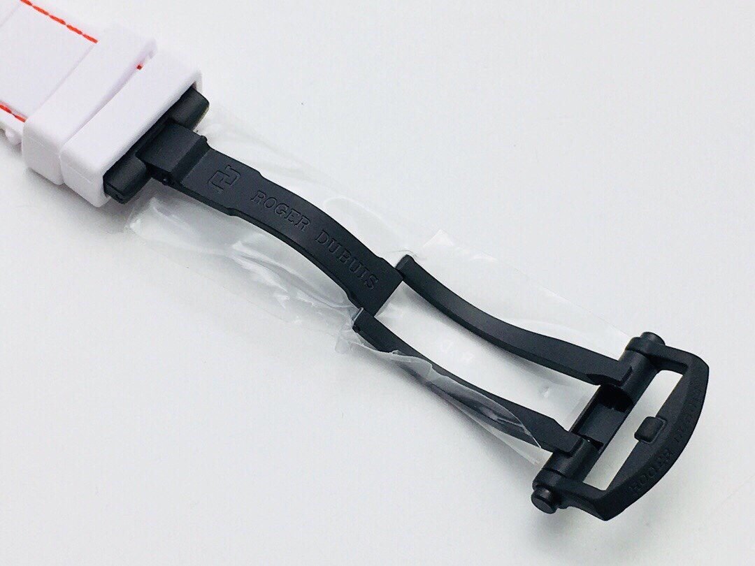 Bracelet: White & Black Rubber Strap with Single Fold Deployant Buckle